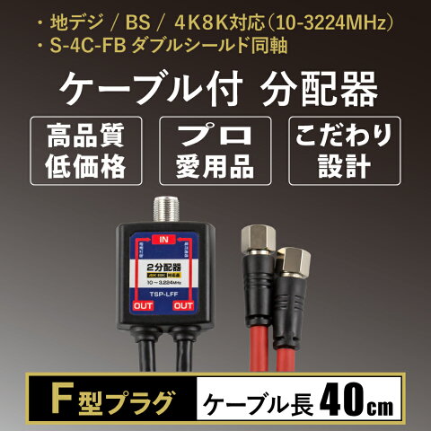 4Cケーブルなので2.5Cよりノイズが少ない!2分配器 地デジ BS CS CATV ケーブル テレビ TV ケーブル付分配器 4C 分配器【4K 8K対応】3.2GHz対応型 両端子通電型 F型プラグ接続 地デジ BS CS (e4427) ○ [C] テレビの信号を2つに分けることができます。