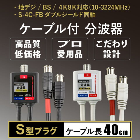 4Cケーブルなので2.5Cよりノイズが少ない!分波器 地デジ BS CS CATV ケーブル テレビ TV 【4K8K対応】3.2GHz対応型 ケーブル付分波器 S型 4C 分波器 地デジ BS CS 差し込むだけで簡単接続、ストレートプラグ付き。