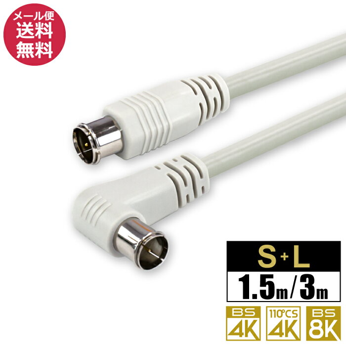 アンテナケーブル 同軸ケーブル 1.5m/3m 4K8K対応 S-4C-FB 地デジ 地上デジタル BS CS TV テレビ S+L型 メール便送料無料 ycm3
