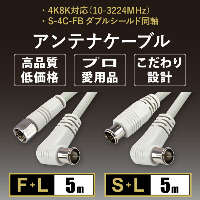 アンテナケーブル 同軸ケーブル 5m(fl , sl) 4K8K対応 S-4C-FB 地デジ 地上デジタル BS CS TV テレビ メール便送料無料 ycm3